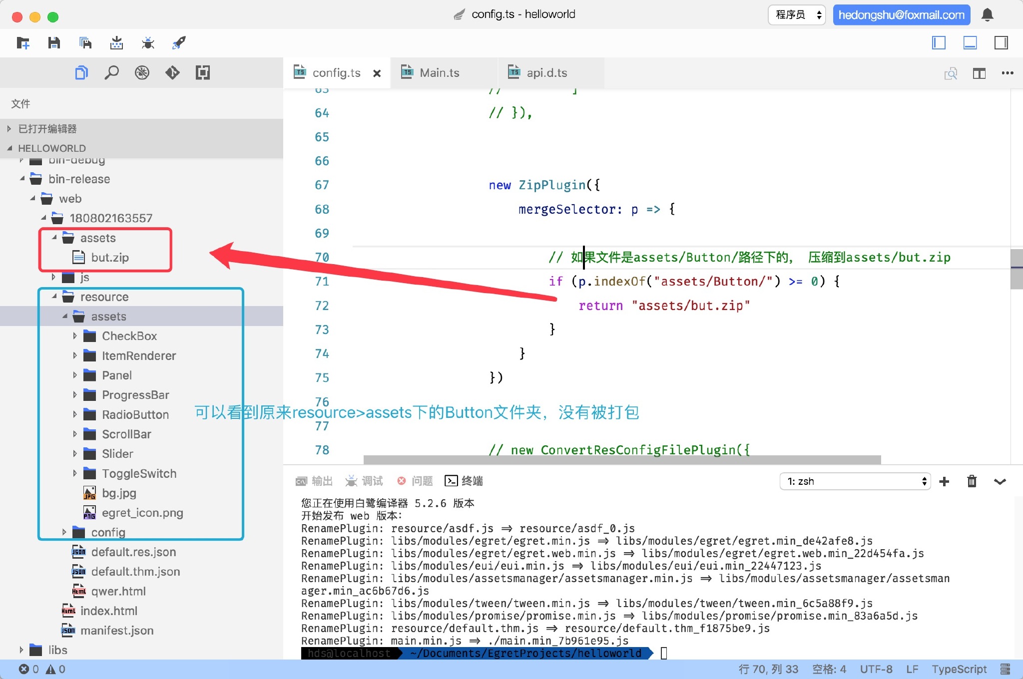 new ZipPlugin({mergeSelector: path => {// 如果文件是assets/Button/路径下的, 压缩到assets/but.zipif (path.indexOf("assets/Button/") >= 0) {return "assets/but.zip";}}});