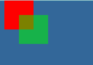const sprcon: egret.Sprite = new egret.Sprite();this.addChild(sprcon);sprcon.x = 10;const spr1: egret.Sprite = new egret.Sprite();spr1.graphics.beginFill(0xff0000);spr1.graphics.drawRect(0, 0, 100, 100);spr1.graphics.endFill();spr1.x = 50;spr1.name = "sprite1";sprcon.addChild(spr1);const spr2: egret.Sprite = new egret.Sprite();spr2.graphics.beginFill(0x00ff00);spr2.graphics.drawRect(0, 0, 100, 100);spr2.graphics.endFill();spr2.x = 100;spr2.y = 50;spr2.name = "sprite2";sprcon.addChild(spr2);const _spr: egret.DisplayObject = sprcon.getChildAt(1);_spr.alpha = 0.5;
