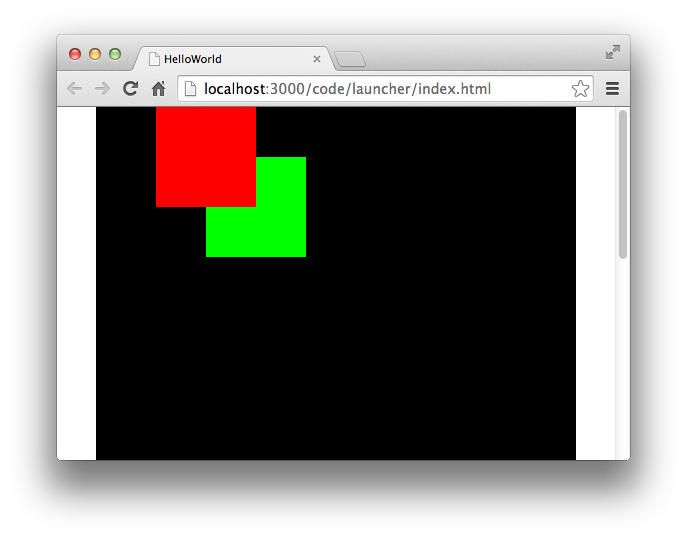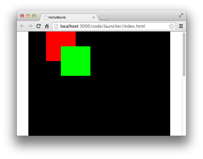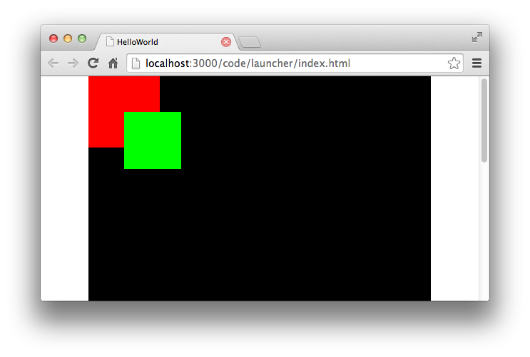 const spr1: egret.Sprite = new egret.Sprite();spr1.graphics.beginFill(0xff0000);spr1.graphics.drawRect(0, 0, 100, 100);spr1.graphics.endFill();this.addChild(spr1);const spr2: egret.Sprite = new egret.Sprite();spr2.graphics.beginFill(0x00ff00);spr2.graphics.drawRect(0, 0, 80, 80);spr2.graphics.endFill();spr2.x = 50;spr2.y = 50;this.addChild(spr2);