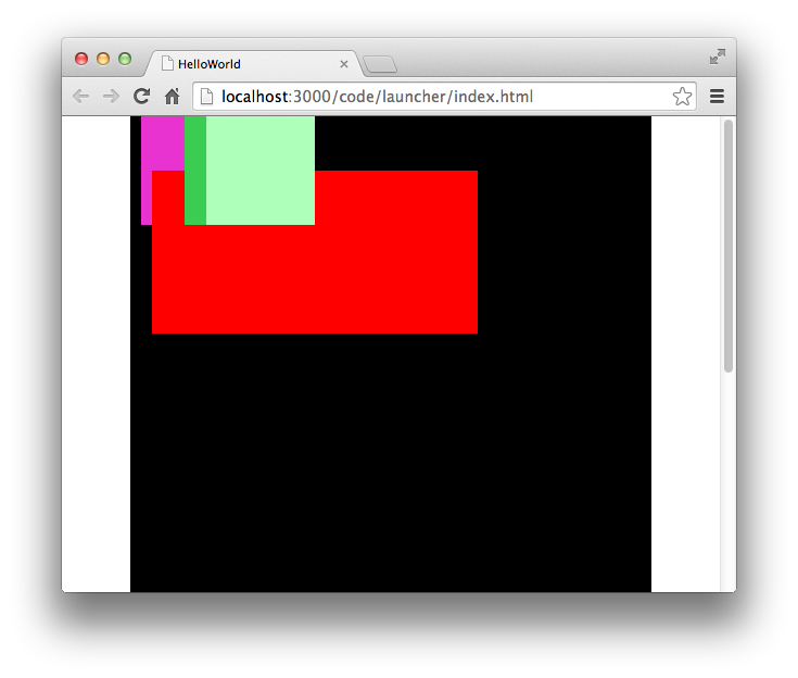 const sprcon: egret.Sprite = new egret.Sprite();this.addChild(sprcon);sprcon.x = 10;for (const i: number = 0; i < 4; i++) {const spr: egret.Sprite = new egret.Sprite();spr.graphics.beginFill(0xffffff * Math.random());spr.graphics.drawRect(0, 0, 100, 100);spr.graphics.endFill();spr.x = i * 20;sprcon.addChild(spr);}const sprNew: egret.Sprite = new egret.Sprite();sprNew.graphics.beginFill(0xff0000);sprNew.graphics.drawRect(0, 0, 300, 150);sprNew.graphics.endFill();sprNew.x = 10;sprNew.y = 50;sprcon.addChildAt(sprNew, 1);