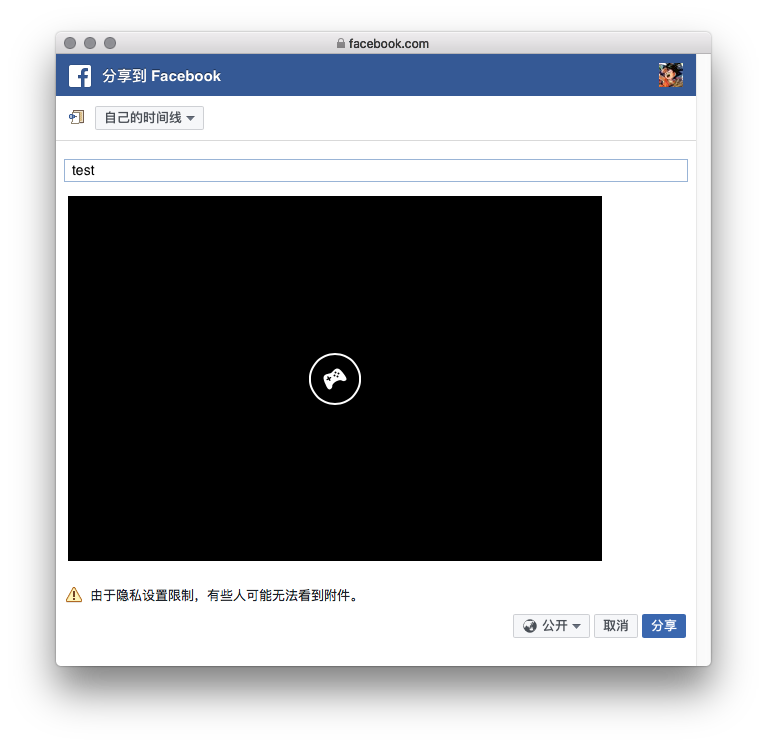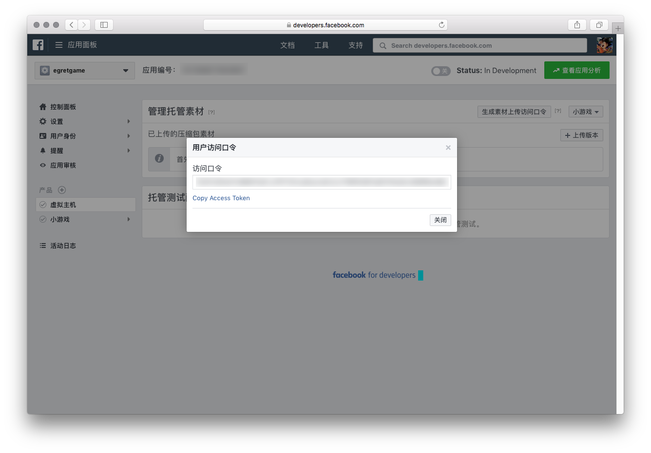 在手机Facebook APP中点击您刚刚分享的游戏,可打开游戏进行测试。