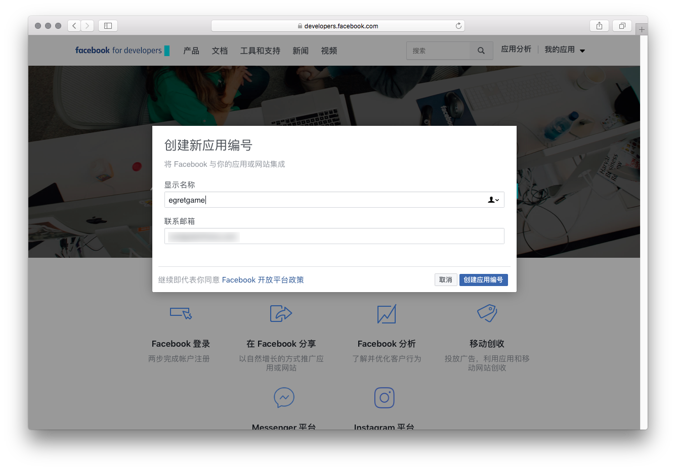 您需要在 https://developers.facebook.com 登录您的Facebook账号