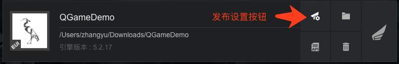 QGameDemo。 然后在 Egret Launcher 您会看到刚刚创建的项目,点击发布设置: