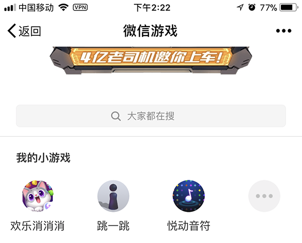 当然,你也可以到「发现」-「游戏」-「小游戏」体验小游戏
