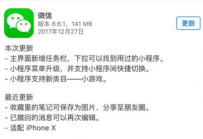 12 月 28 日消息,微信 iOS 版更新到 6.6.1 版本。该版本有两大亮点: