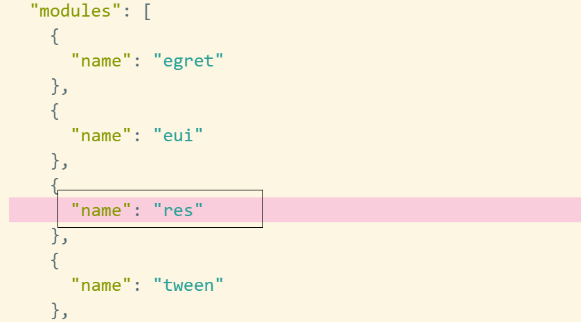 答:assetsmanager 是 res 的替代方案,这两者的 API 有 90% 保持一致,但是仍然有一些小区别,主要是在 RES.Analyzer 上,如果您遇到了相关问题,您可以在 egretProperties.json 中修改模块配置,从 assetsmanager 修改回 res 并执行 egret clean ,这样就可以换成 res 资源管理库了。更改如图所示:
