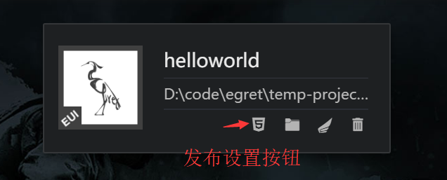 然后在 Egret Launcher 您会看到刚刚创建的项目,点击发布设置: